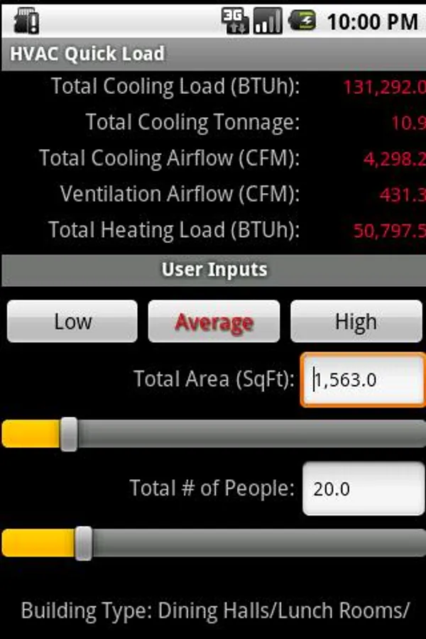 The HVAC Quick Load for Android is the one and only rule-of-thumb HVAC heating and cooling load application for Google Android mobile devices. This app performs rule-of-thumb HVAC cooling and heating load calculations for many types of commercial, industrial, institutional, and residential buildings. It allows you to quickly calculate the total required cooling and heating loads (in BTU/hr or Tonnage) and air flows (CFM or L/s) by inputting just the building type, total square area and number of people.