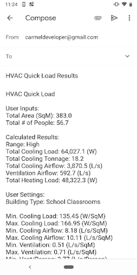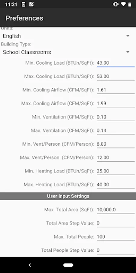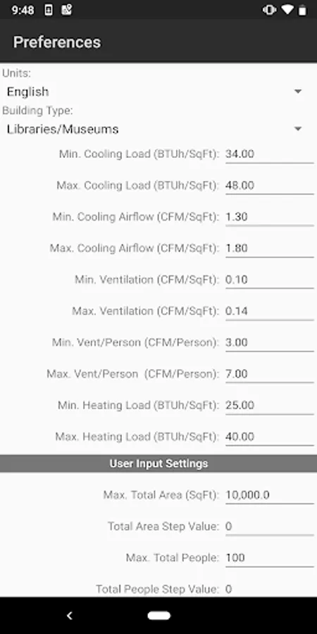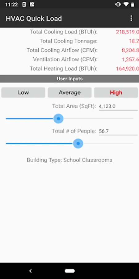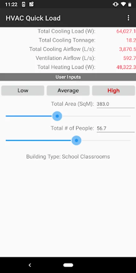 The HVAC Quick Load for Android is the one and only rule-of-thumb HVAC heating and cooling load application for Google Android mobile devices. This app performs rule-of-thumb HVAC cooling and heating load calculations for many types of commercial, industrial, institutional, and residential buildings. It allows you to quickly calculate the total required cooling and heating loads (in BTU/hr or Tonnage) and air flows (CFM or L/s) by inputting just the building type, total square area and number of people.