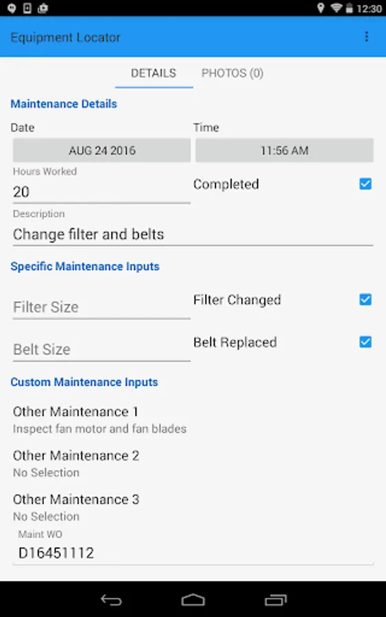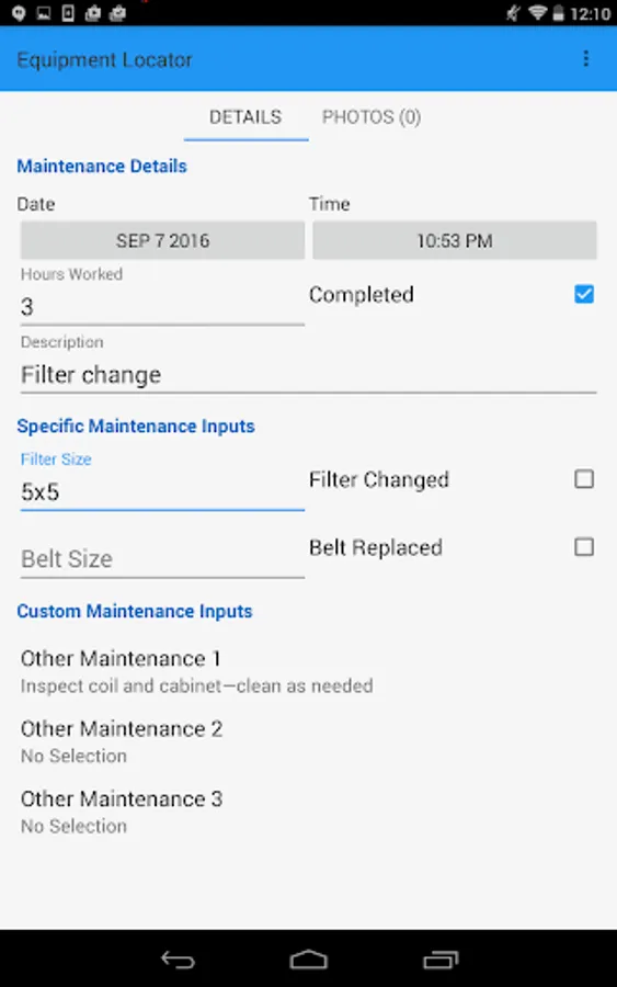 3. Add maintenance event information to the equipment
