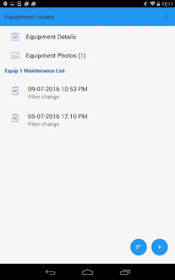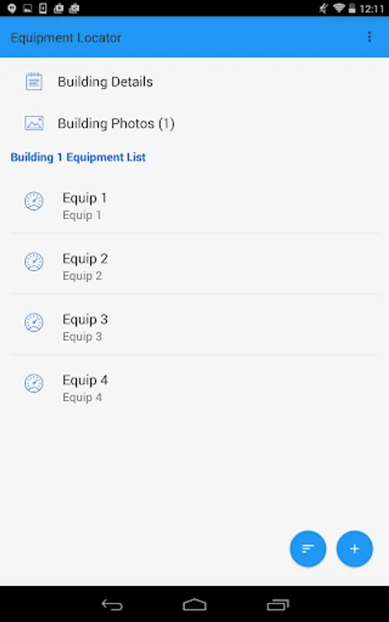 2. Add an unlimited number of equipment to each building and input information about the equipment along with photos and spec sheets