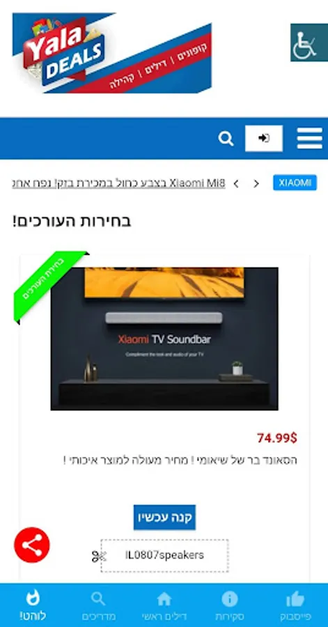 *האפליקציה כוללת אפשרות שיתוף קלה ונוחה לכל דיל /מוצר/ מדריך שחשוב לכם לשתף הלאה.