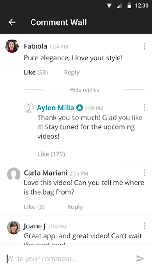 · Leave comments, connect with other followers, and get the chance to be noticed by Aylen herself