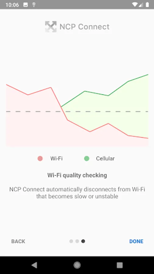 NCP Connect delivers an optimized Wi-Fi experience by analyzing nearby Wi-Fi signals and connecting only when a quality connection is available.