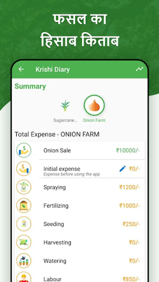 With the help of Krishi Diary app, you get a record of all your farm work expenses which helps you in knowing the net profit.