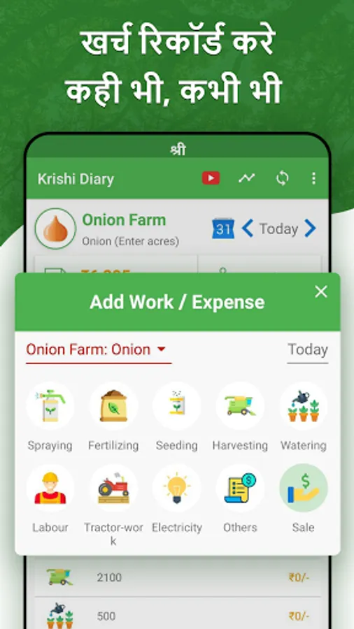 Keep track of expenses on sowing, fertilizer, pesticides, spray, labours, tractor work and other kheti related work