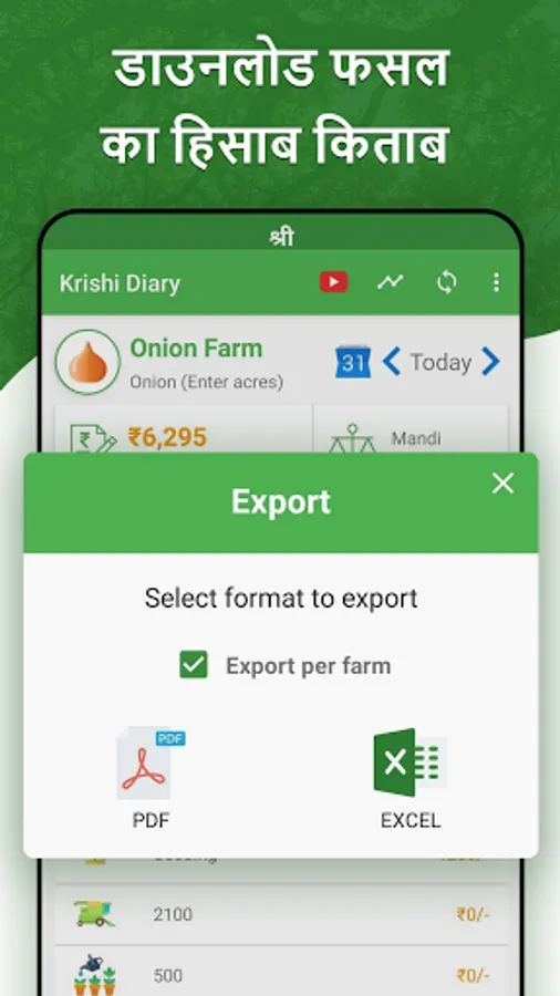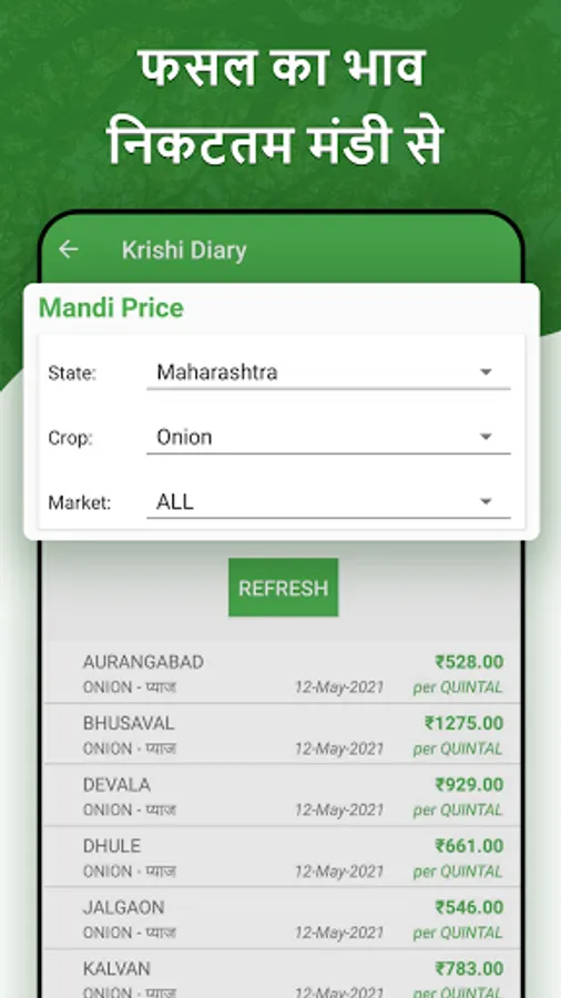 Krishi diary app keeps your Hisab-Kitab & also gives you information about the Mandi Bhav. Using this data, you can choose a Mandi to sell your crop (Fasal) where you get the higher bhav.