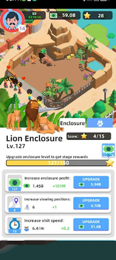 Use your earnings to upgrade and expand your animal enclosures, uncovering a wider range of animal species along the way.