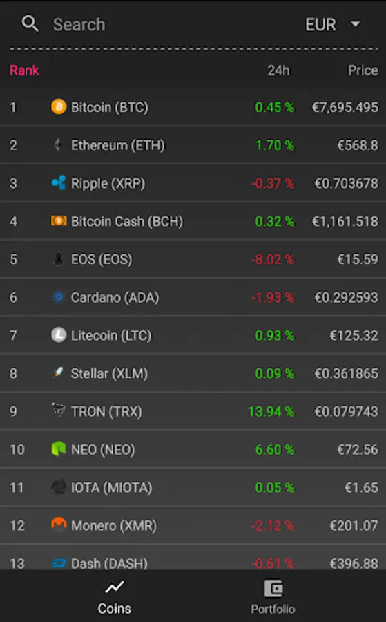 • Over 1500 cryptocurrencies from Coinmarketcap