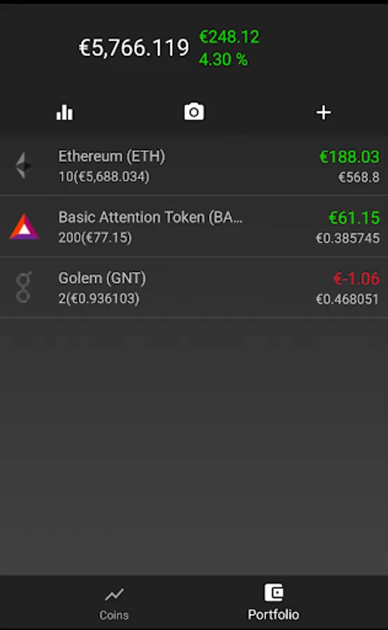 • Scan your account's QR code to import your portfolio (only ETH addresses for now)