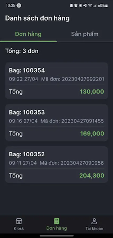 EASY, FAST ORDER CREATION: With a friendly interface, the service staff only need to scan the customer's QR bag or enter a new bag number to create an order, select the item the customer ordered on the menu list screen without No need to manually record on the slip.
