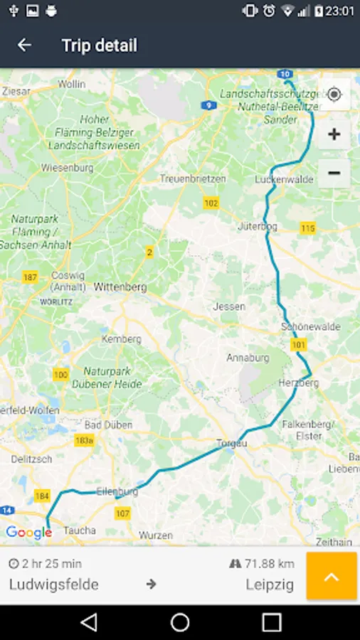 * GPS coordinates are translated to name of places you traveled providing a nice description of your journey