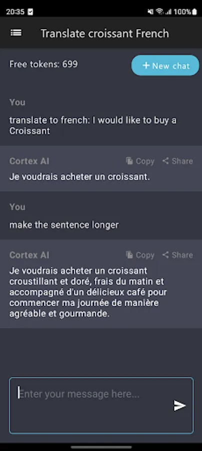 Cortex AI's multilingual capabilities mean that you can chat in any language you want. Translate text, learn and practice your language. Cortex AI can even act as a language teacher to help you improve your language skills.