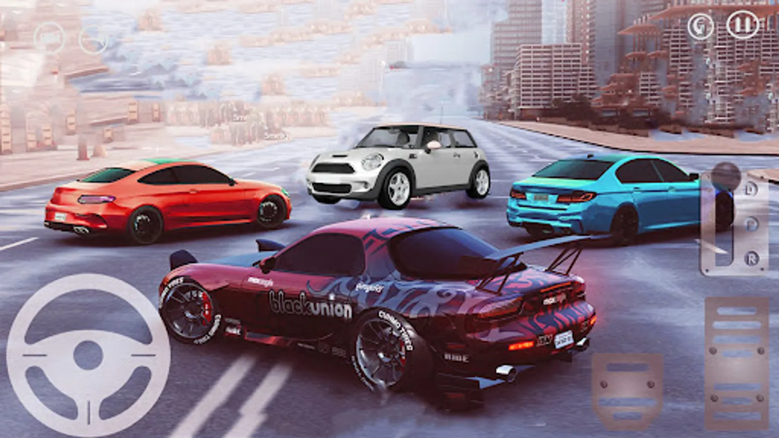 Burn your tires by sidestepping with your realistic modified car in the city. Try not to hit other cars in the traffic and other objects.