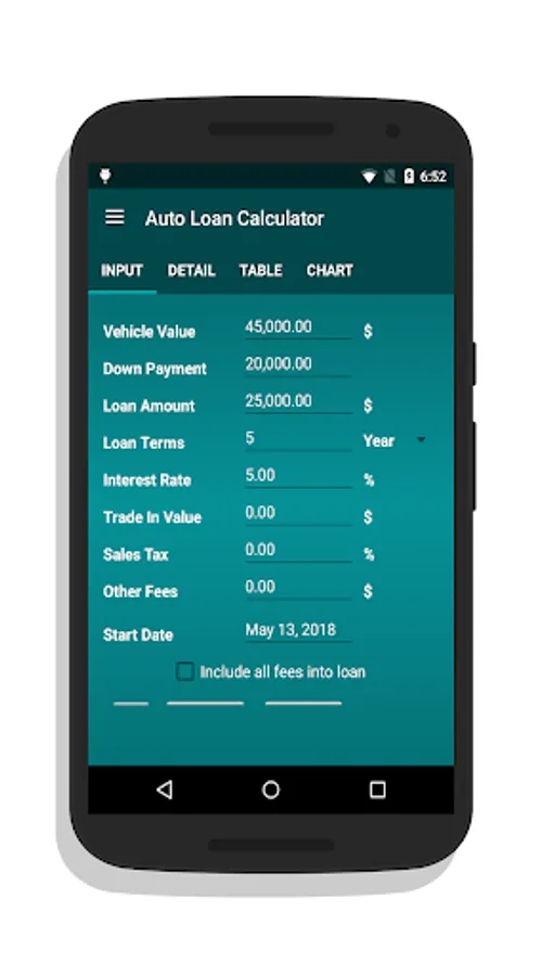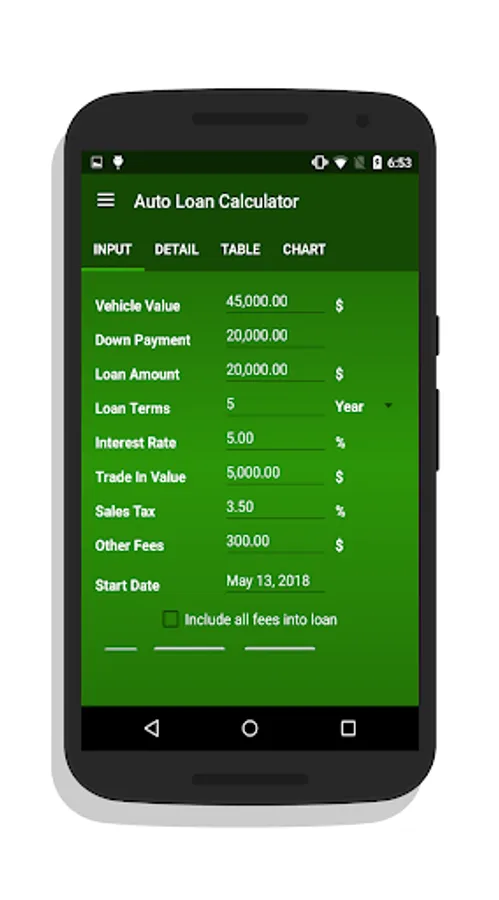 The auto loan calculator has build in options for car trade in, sales tax as well as other fees. If you don't want to include these option field, simply leave them as 0. You can print, share or save your car loan amortization schedule.