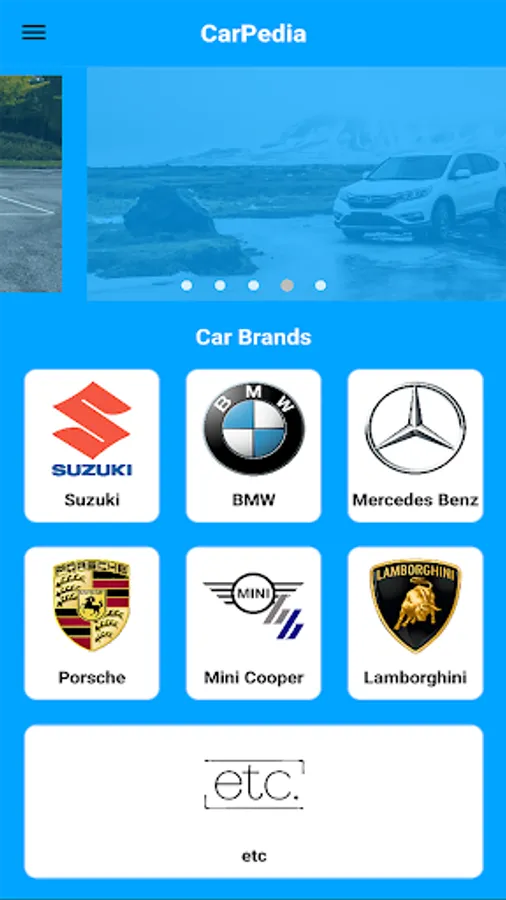 After logging in or registering, you'll be taken to the home screen. Here, you'll find a visually appealing display of car brand categories. Each category represents a popular car brand. Tap on the category that interests you to explore vehicles from that specific manufacturer.
