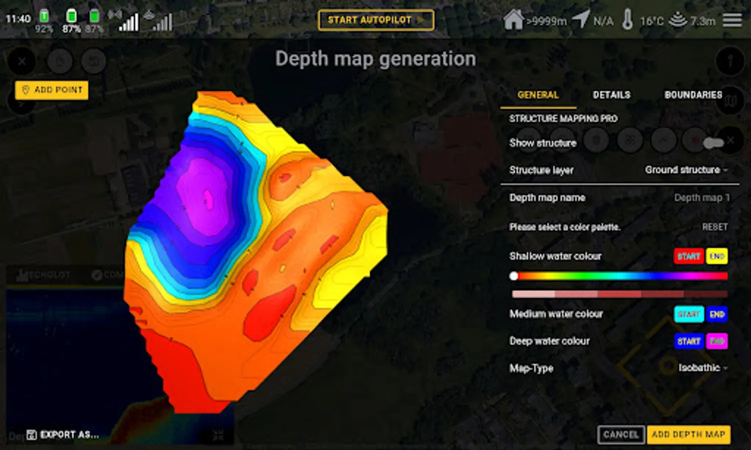 The autopilot replaces the normal remote control of the boat. However, we offer the possibility to connect a remote control to the autopilot. So you can choose whether you want to control the boat via your tablet or the remote control. For autopilot app control, all Android tablets with Bluetooth can be used. Currently, our app is optimized for 10-inch tablets. You can steer the BaitBoat directly via the tablet's touchscreen.