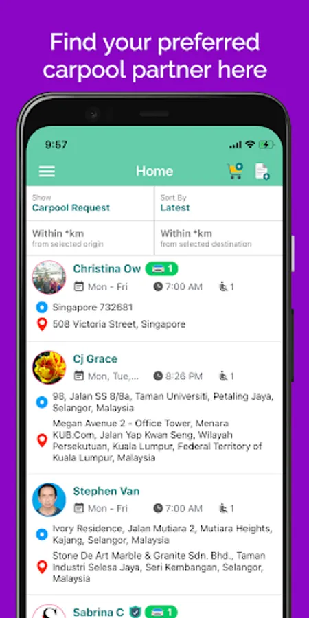Request Carpool: Unable to find a carpool offer from the search results? Post a carpool request so that drivers in our community would approach you and offer you a carpool.