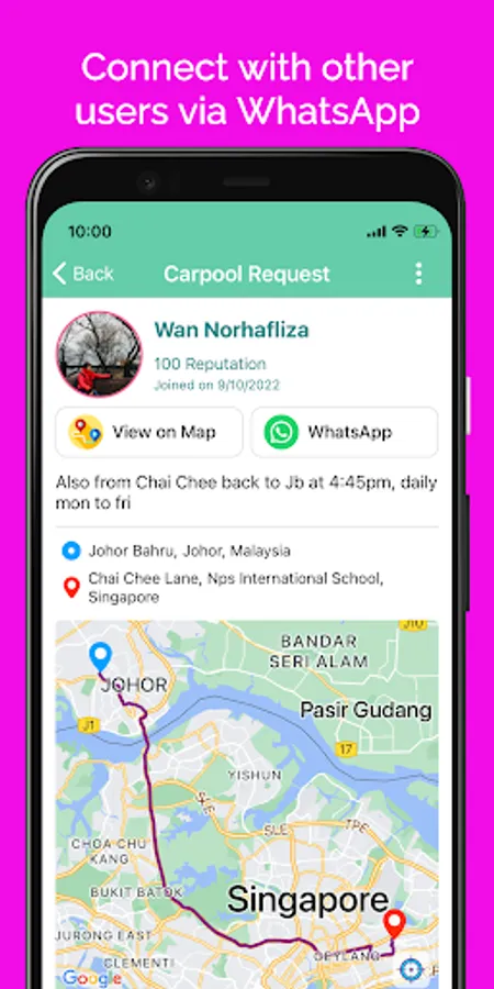 WeRide facilitates carpooling by connecting people seeking for drivers or passengers in Malaysia and Singapore. Join WeRide community today and enjoy our cool features now !!