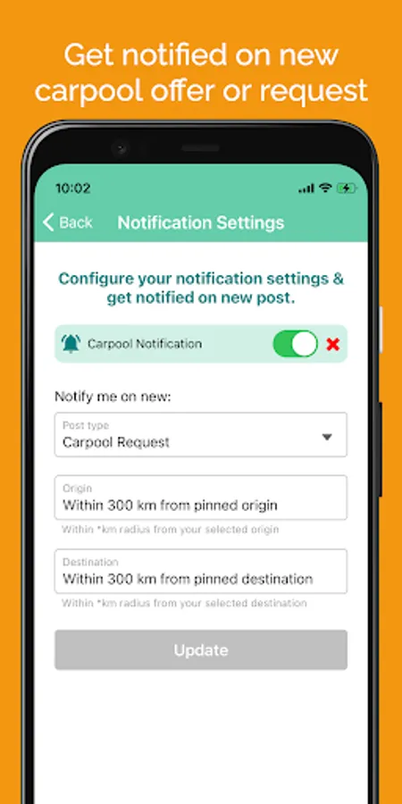 Notification: Subscribe to the routes you are interested and get notified when there is a new carpool request / offer.