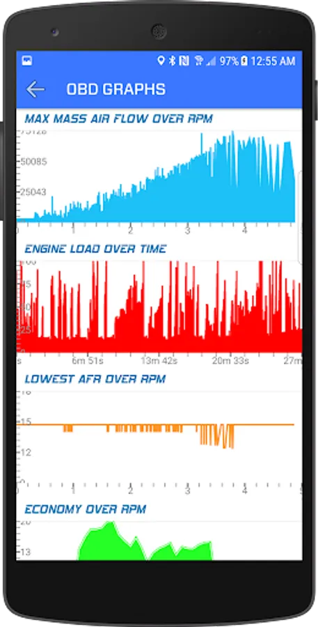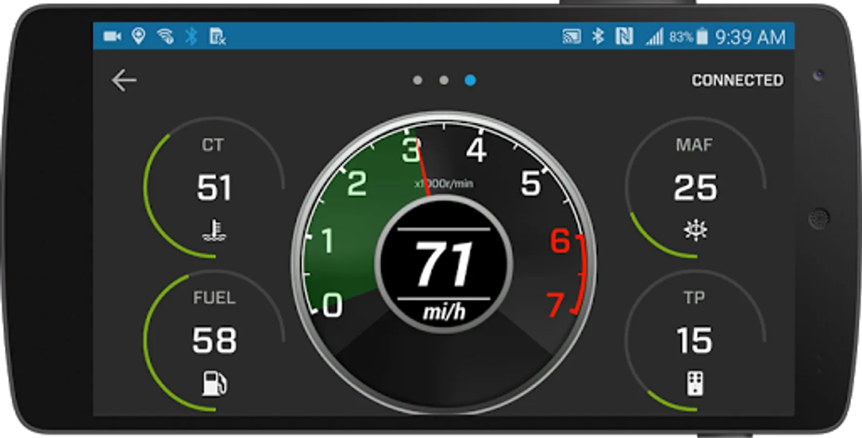 The app can monitor your vehicle's operation state including RPM, speed, MAF, IAT, AFR, coolant temp, ignition timing etc... via an OBD adapter and display/notify analyzed information. Also DTC (trouble code) can be logged and cleared.