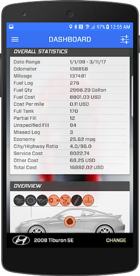 Many people neglect the importance of maintaining oils, chemicals, and many parts that need to be replaced to prolong the car's life span. This app helps car owners, especially newbies to cars, manage their cars, track mileage, track what services need to be done, and so much more. The users can visualize their car parts' estimated life span so they can prepare upcoming maintenance.