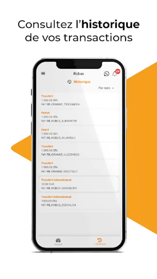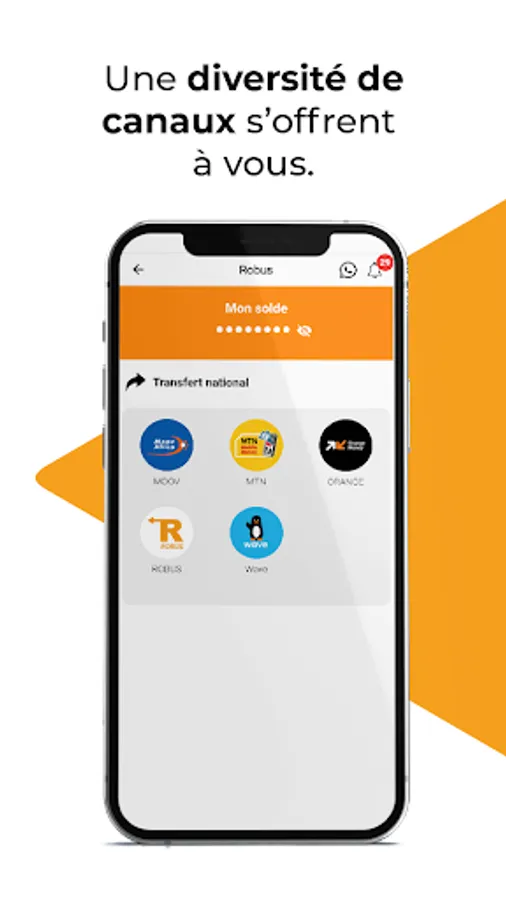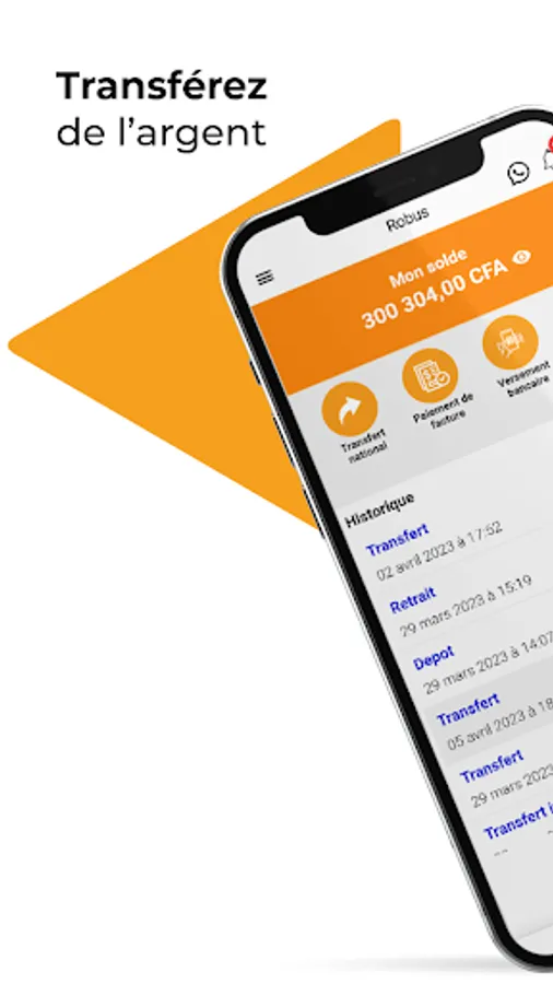 ROBUS is a digital wallet that offers services such as money transfer in Côte d'Ivoire and around the world, bill payment (CIE, SODECI and CANAL+), bank payments and money transfer to operators mobiles (Moov Africa, Orange CI, MTN CI and Wave CI).