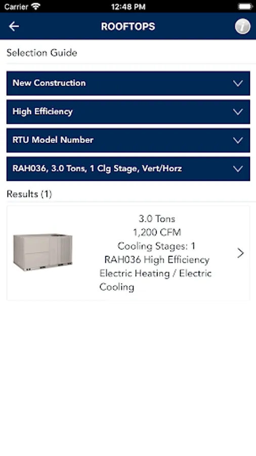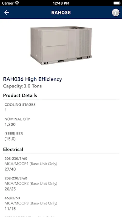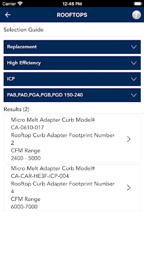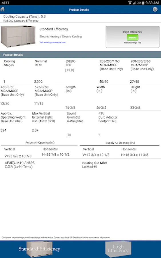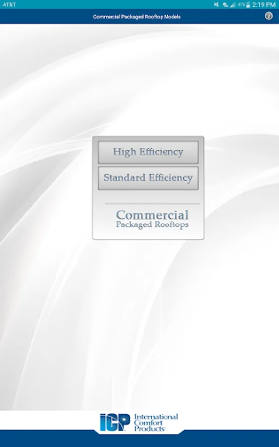 The ICP® Rooftops app allows users to perform on the spot selection of HVAC rooftop units for both replacement and new construction, and estimate energy savings between ICP® Standard and High Efficiency units. Users can input an existing unit model number for ICP or competitive equipment, or desired unit specifications, and obtain the optimal ICP model for their requirements.