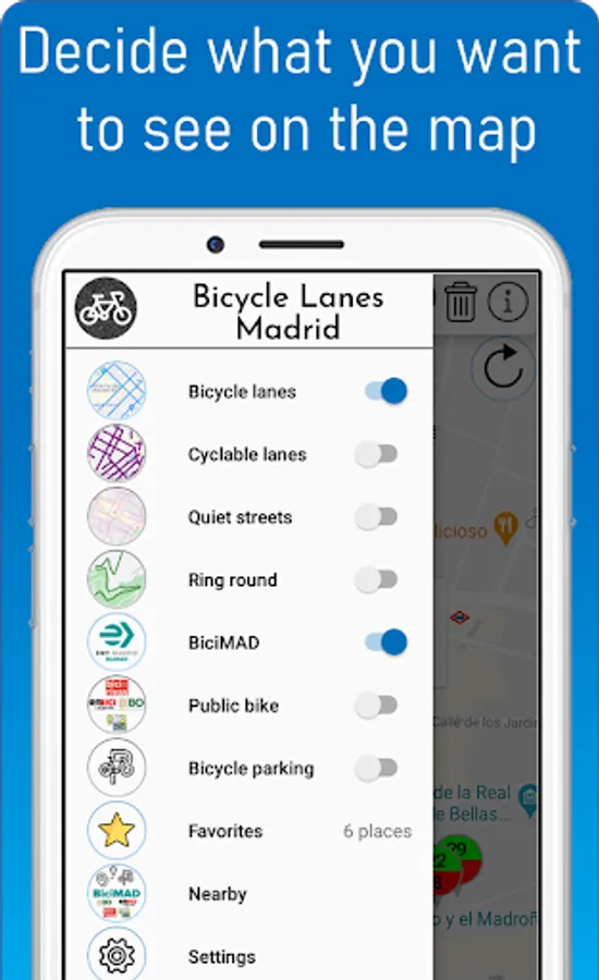 - Favorits and nearby places