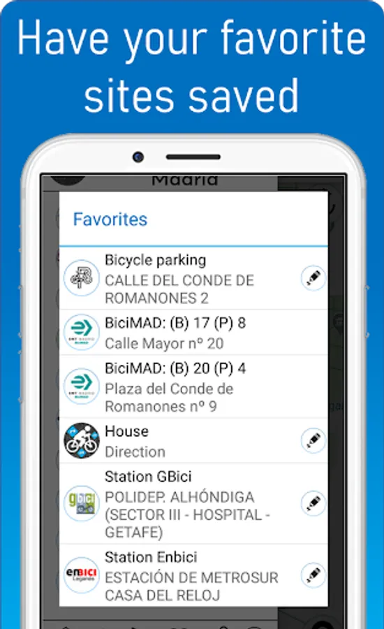 - Stations GBici, Enbici, Bicinrivas, BiciBoadilla