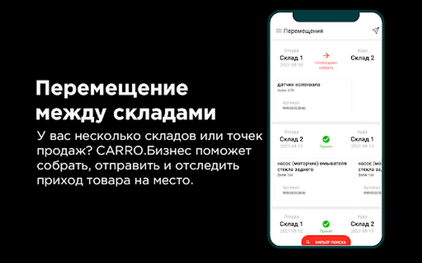 - Ability to unload spare parts on your personal CARRO. Website - https://site.carro.by