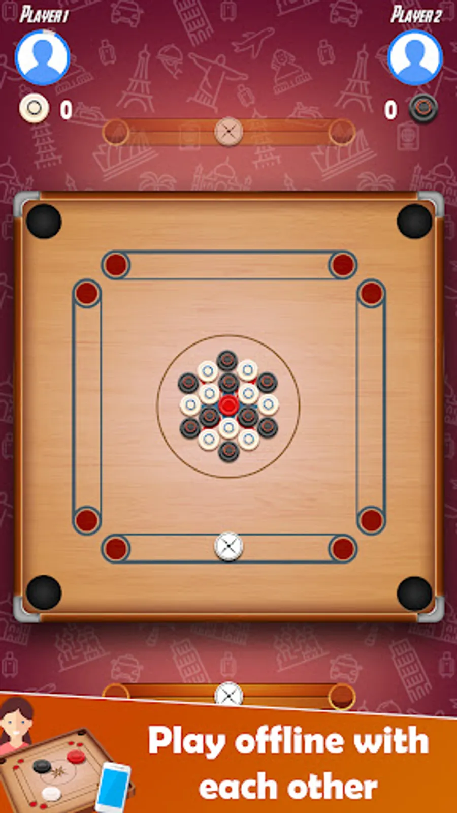 - Online Multiplayer, Private room and offline modes of carrom board game