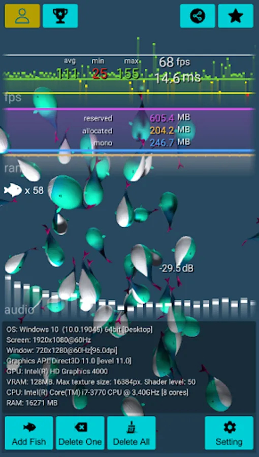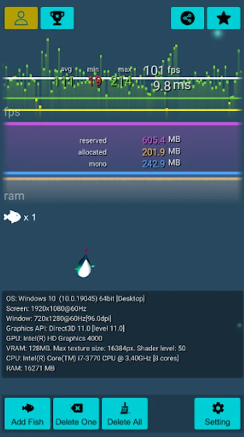 With the whale fish character 3d virtual object generator, you can drop them into the tank to measure how smooth the fps indexing index is.