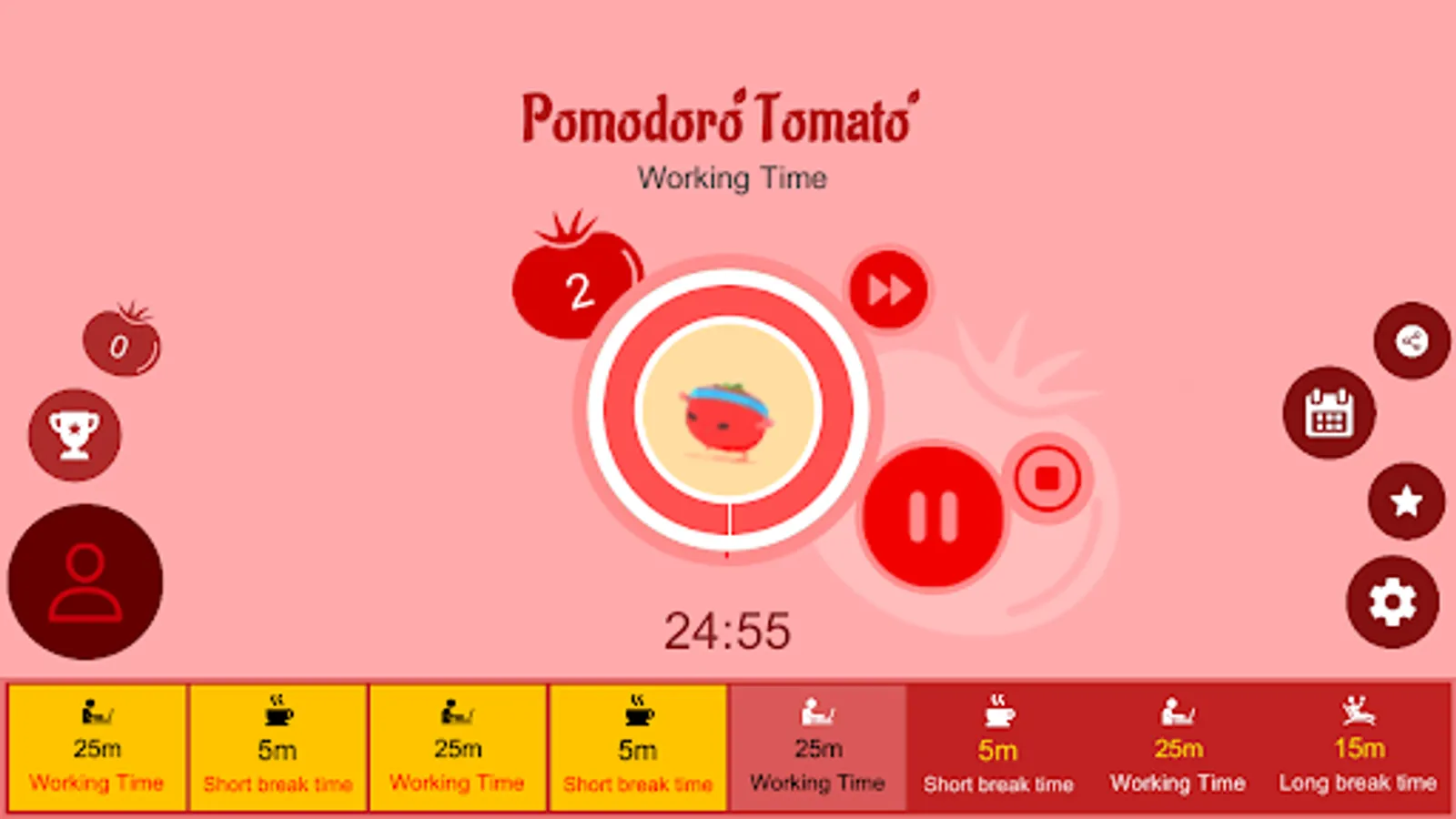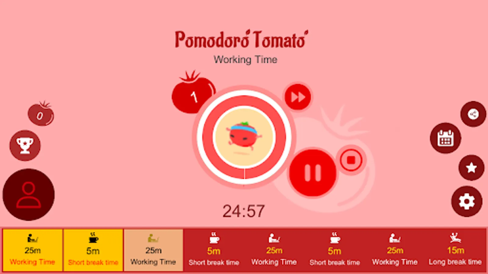 Pomodoro Tomato is a productivity application designed to help users stay focused and achieve their tasks efficiently. What makes Pomodoro Tomato unique is its ability to allow users to customize their intervals and track their statistics, as well as providing relaxing instrumental music to help them relax during breaks.