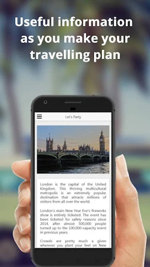Download this Go London! Countdown to New Year 2020 free app now to experience a hassle free London travel planning and hotel reservation, all in the convenience on your mobile phone.