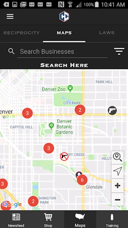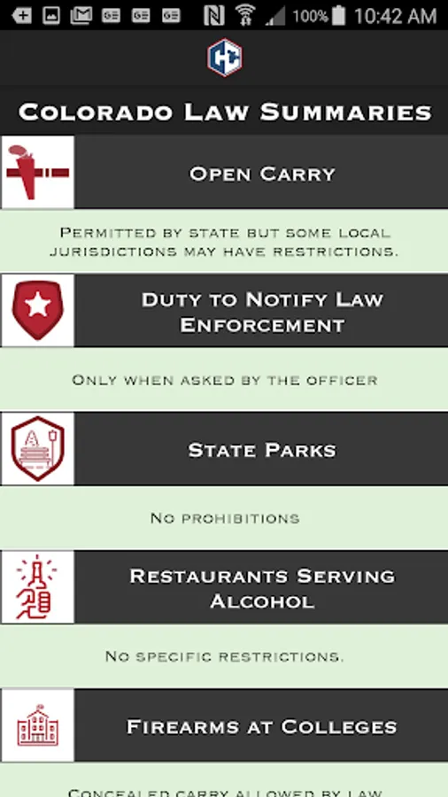 This app features the tools that every firearm owner and concealed carry permit holder needs to be successful. 100% free and 100% No Ads EVER. Search for a gun range or gunsmith near you, see what local businesses prohibit guns, keep track of all your training and your guns, read state specific law summaries. Read the top industry articles about gun ownership, law, and safety. Get a current reciprocity map for your state permit(s).