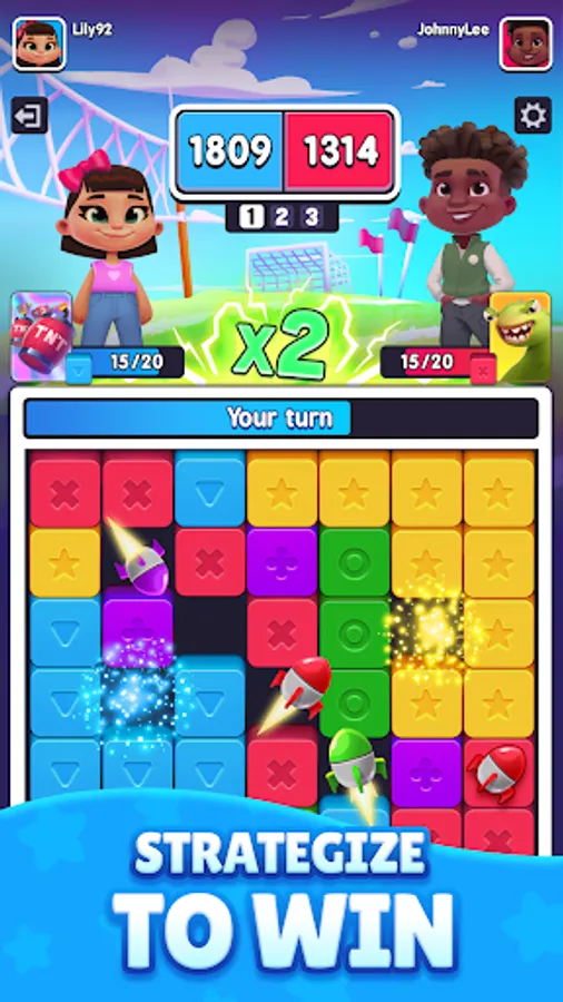 Blast your way to the top with a wide variety of fun power-ups that will help you outsmart your opponents. With every move you make, you'll need to think ahead and use your Boosters to gain an advantage. With multiple Boosters available, each with its own tactics and effect, you'll always have a new way to play and strategies to test.