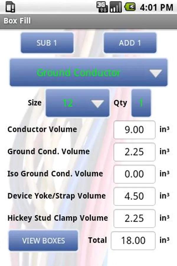● Find the total box fill by entering the size and number of conductors, straps and clamps.