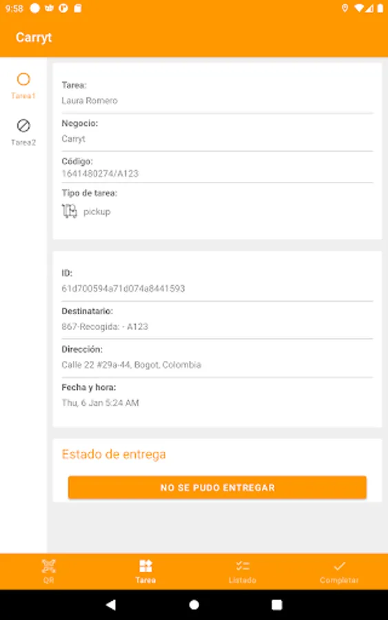 From this application you can log in, manage the tasks assigned to the user and look at the next points on the map and take the evidence of the deliveries.