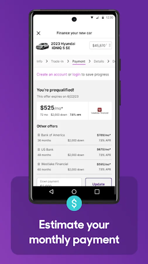 Whether you’re looking to sell or trade-in, get an instant offer on your current vehicle by answering just a few questions, all without leaving the app.