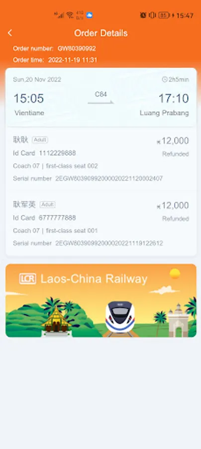 LCR Ticket is the official mobile phone ticketing application software launched by Laos-China Railway Co., Ltd. The software has functions such as ticket inquiry, reservation, online payment, ticket change, refund, order inquiry, frequent contact management, and personal data modification. To provide passengers with convenient, efficient and fast travel services.