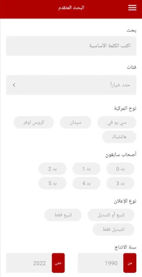 سهولة عملة البحث تكمن في البحث عن السيارات المناسبة لهم عن طرق نوع السيارة، نوع الغيار، حجم المحرك، نوع المحرك، السعر، سنة الإنتاج و آلية الدفع.