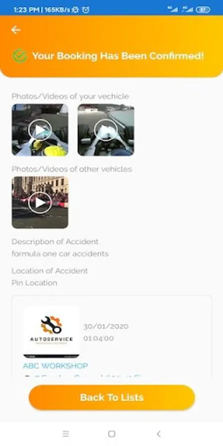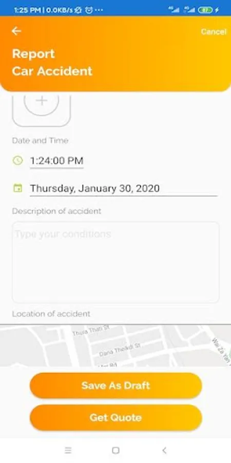 Step 1: Upload pictures / videos of your accident