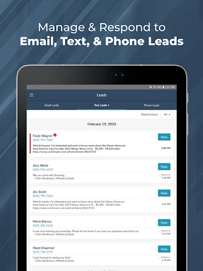 - NEW! Instantly share photos with your leads with RapidReply™ Instant Messaging