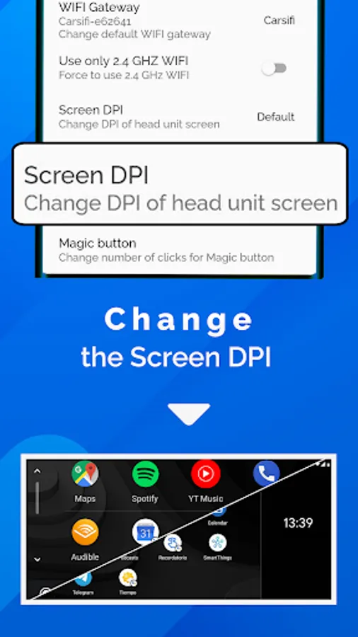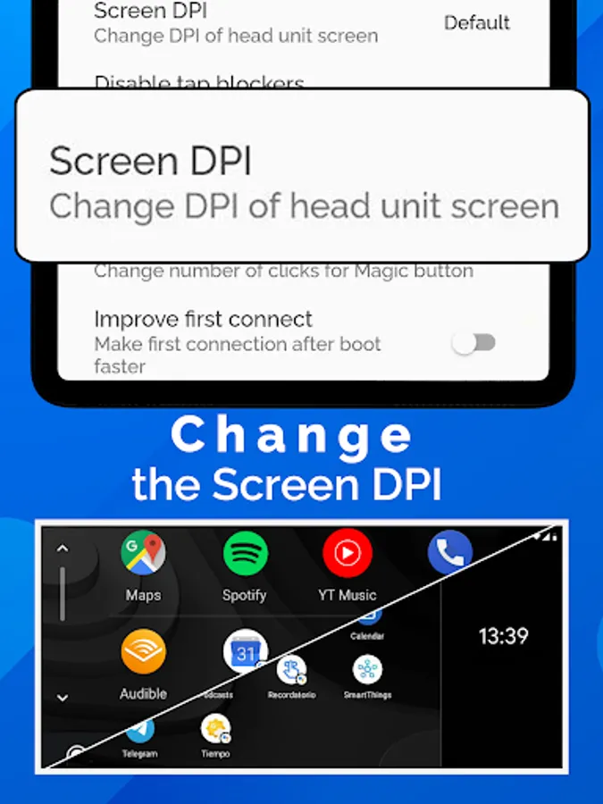 - Adjust the head unit screen DPI to have a different experience with AA
