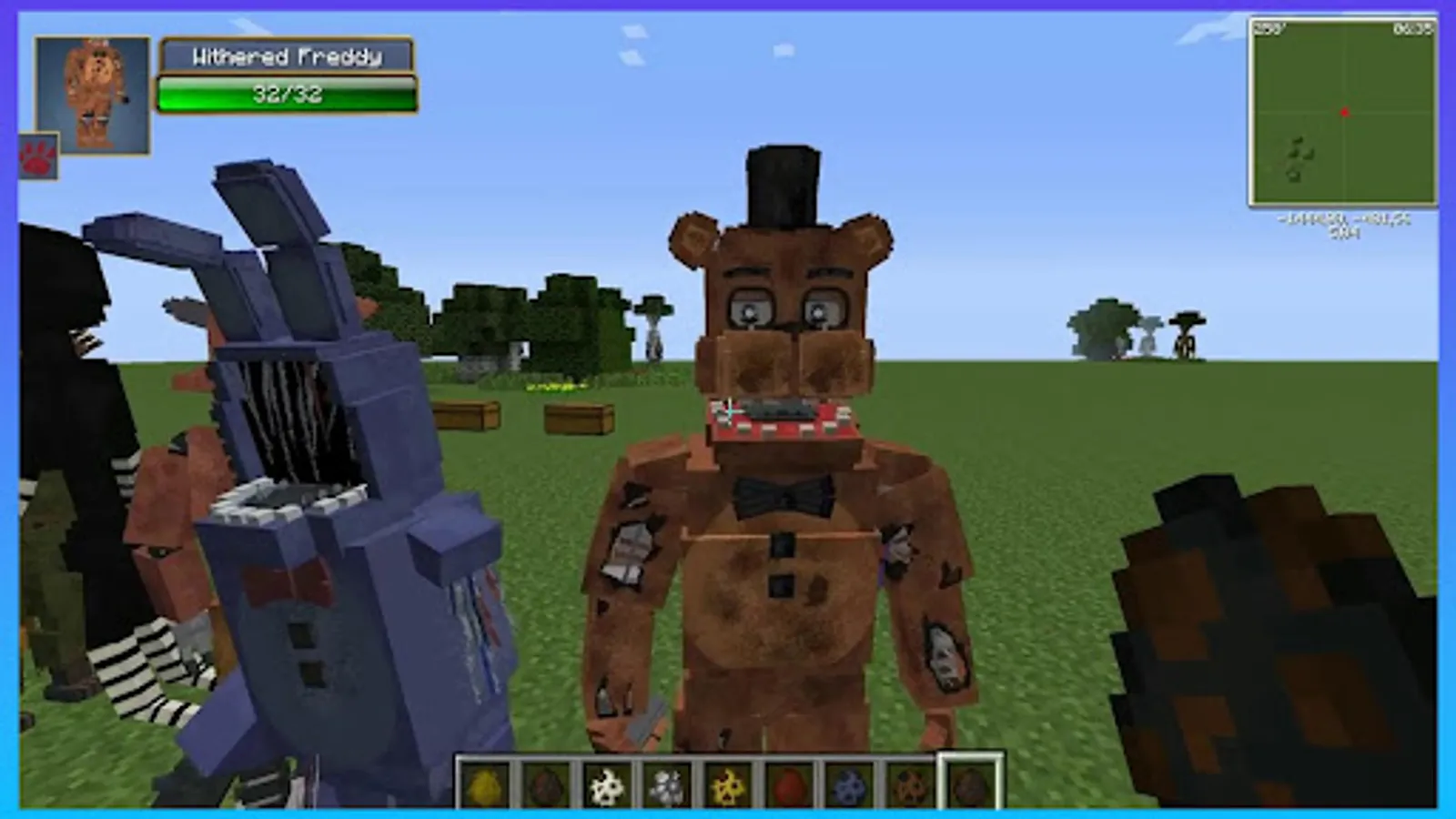 You need to download addons by clicking on the buttons in the menu, after activating them in your MCPE world. In addition to the main files, download additional bonus mods and textures. This addon works as simple as possible. You need to go into creative mode and find spawner freddy and other mobs you need.