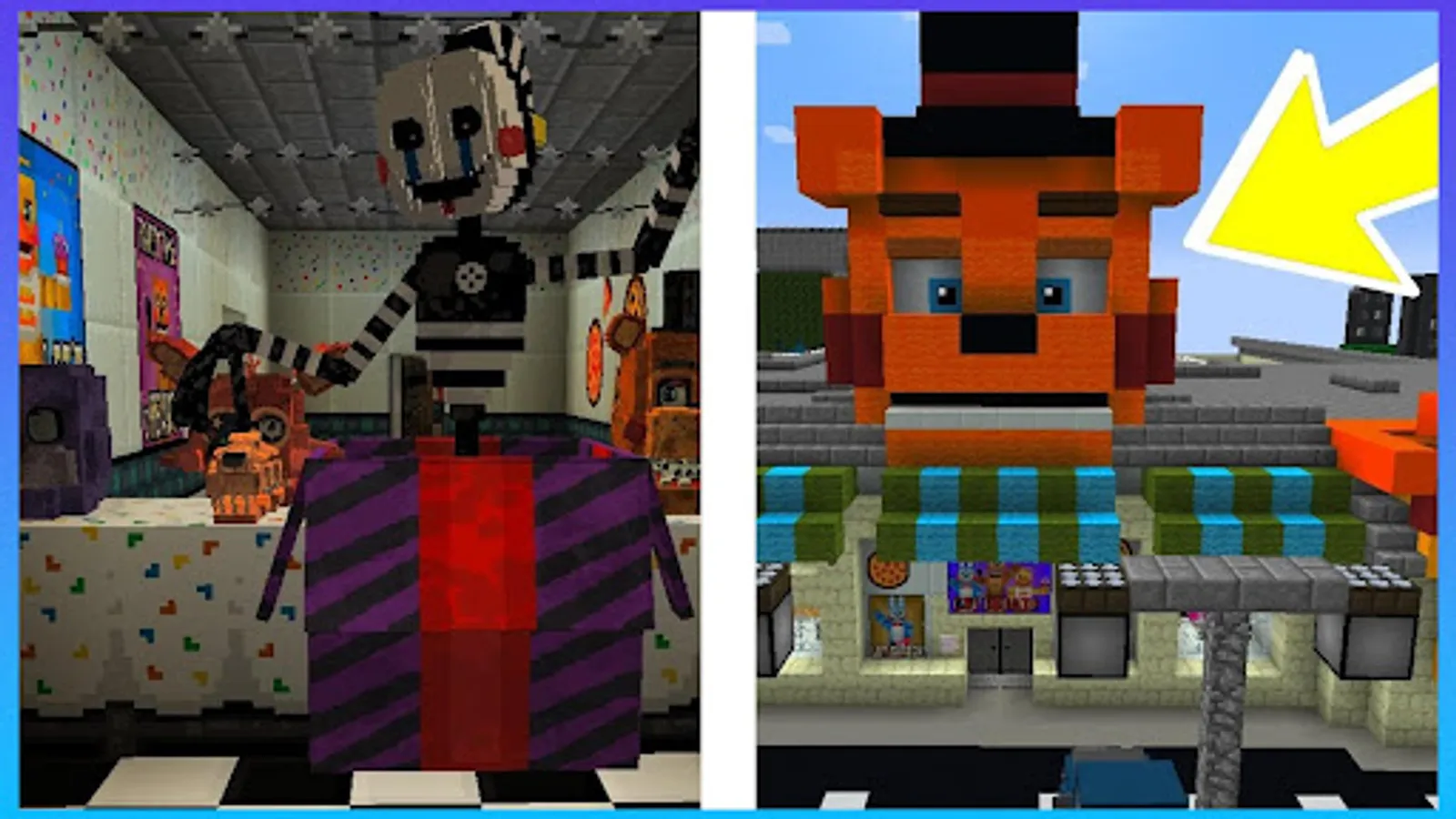 The new map for Five Nights at Freddy's will be used as a texture pack for the addon Fnaf Mod for Minecraft PE!