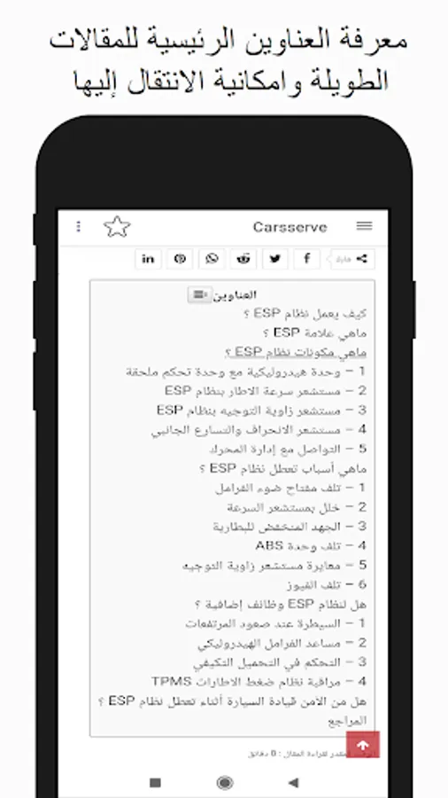 - Easily navigate different auto mechanics articles within the Carsserve app.