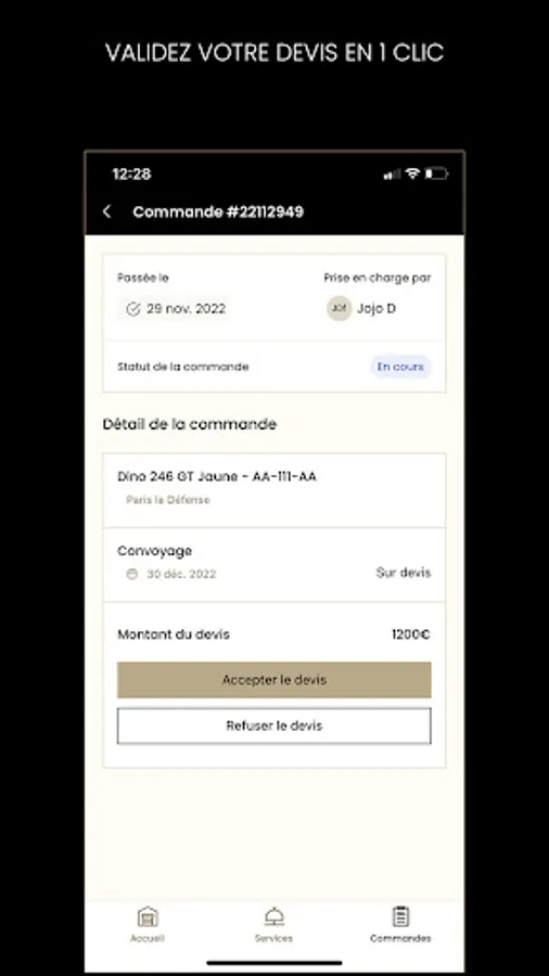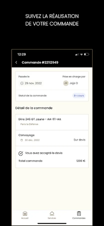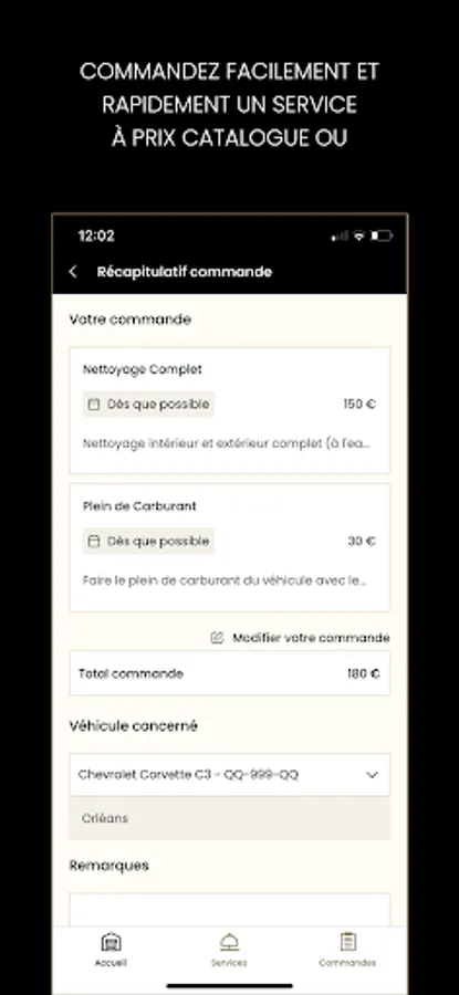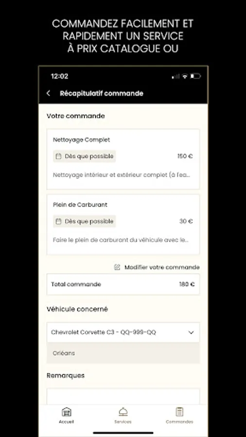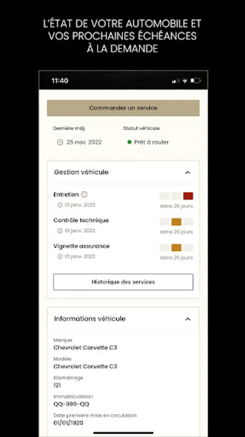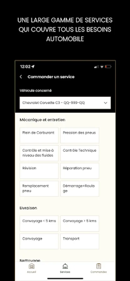 Grâce à notre application, vous avez désormais accès à tous les services de nos conciergeries, où que vous soyez. Vous visualisez le niveau de carburant, les prochaines dates importantes : entretien, contrôle technique, vignette assurance l'état général de votre véhicule, vous pouvez commander un service, spécifier une date et suivre votre commande.
