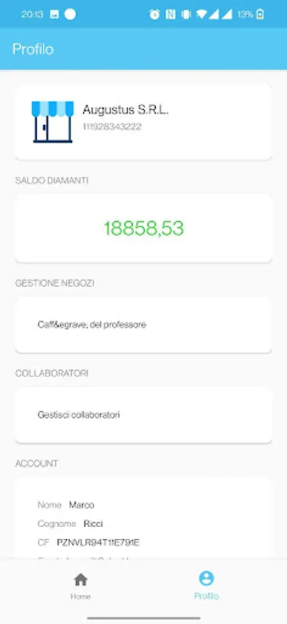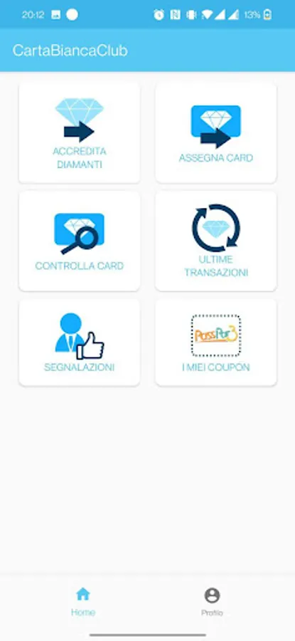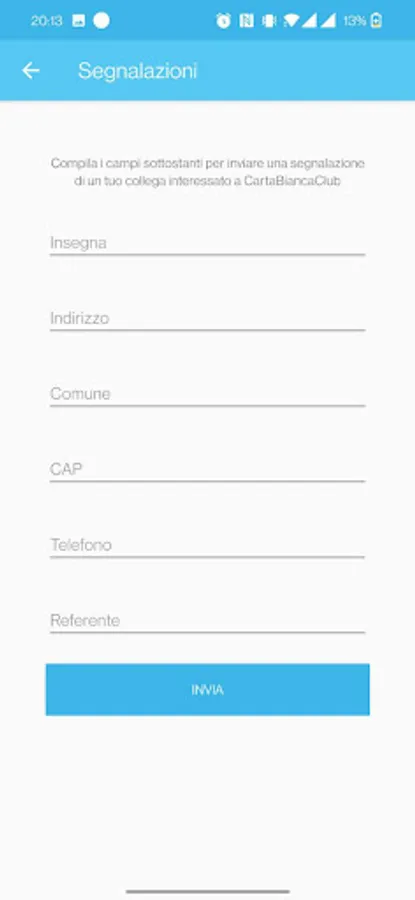 App dedicated to merchants enrolled in the CartaBiancaClub program.