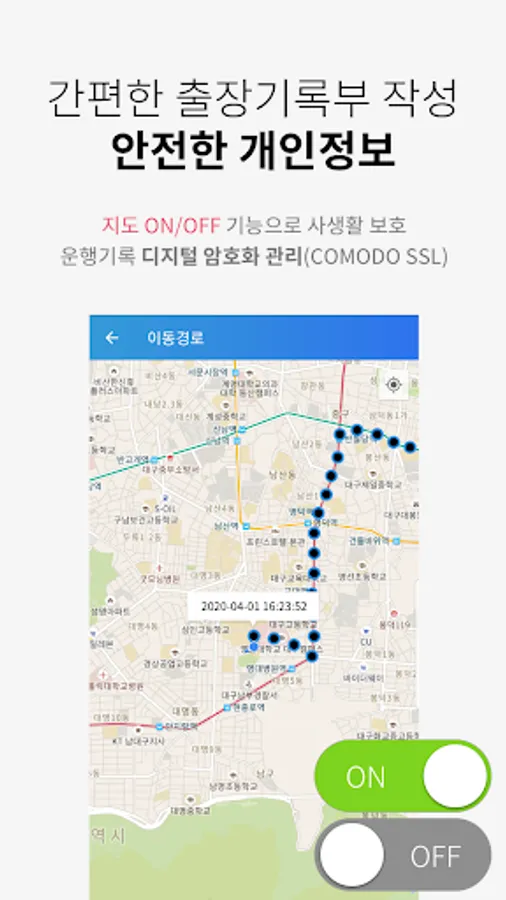* All driving record data SSL security authentication and digitally encrypted storage of location coordinates.